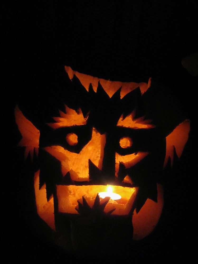 Renee carved an adorable pumpkin this year! Nice touch with the ears :)